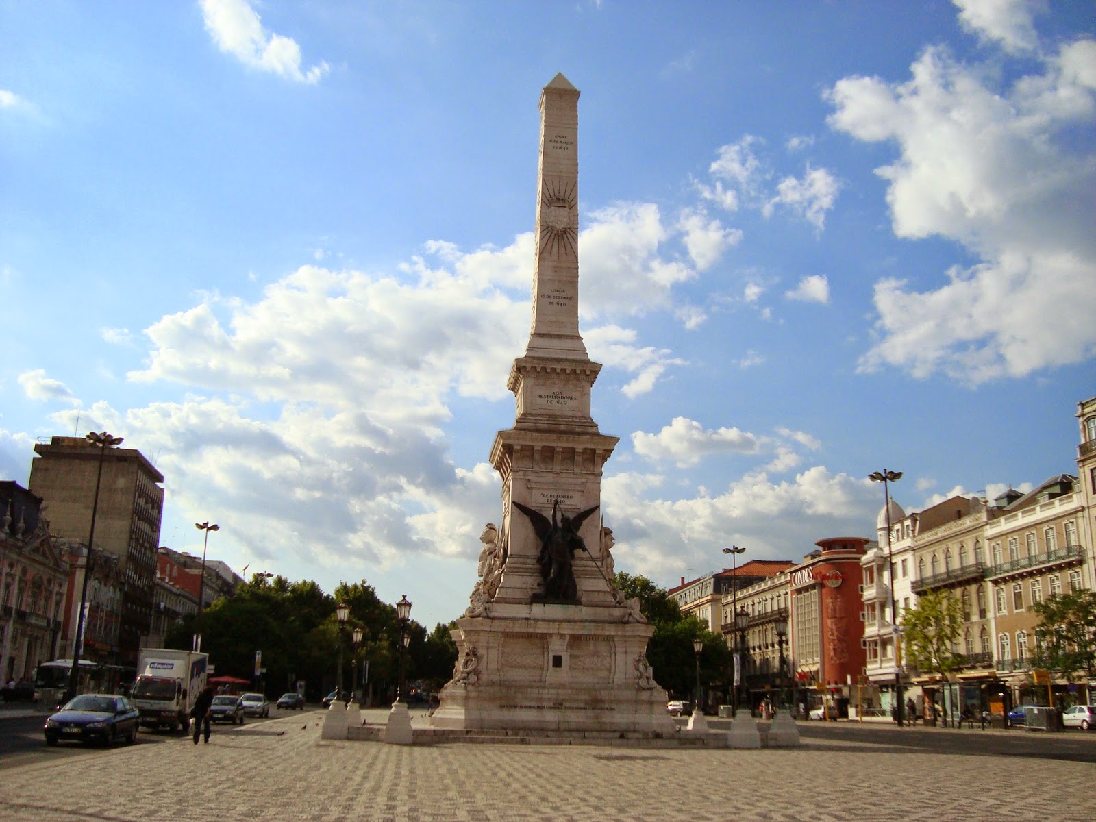 - Lisbon – Restauradores – Monument to the Restorers, in front of the obelisk, near Hard Rock Cafe Lisboa. Image.